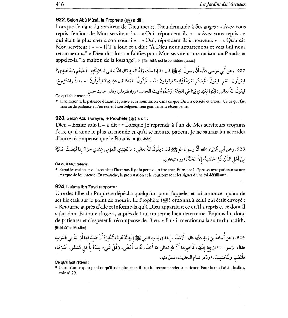 faut lui recommander la patience. Pour la totalite du hadith,