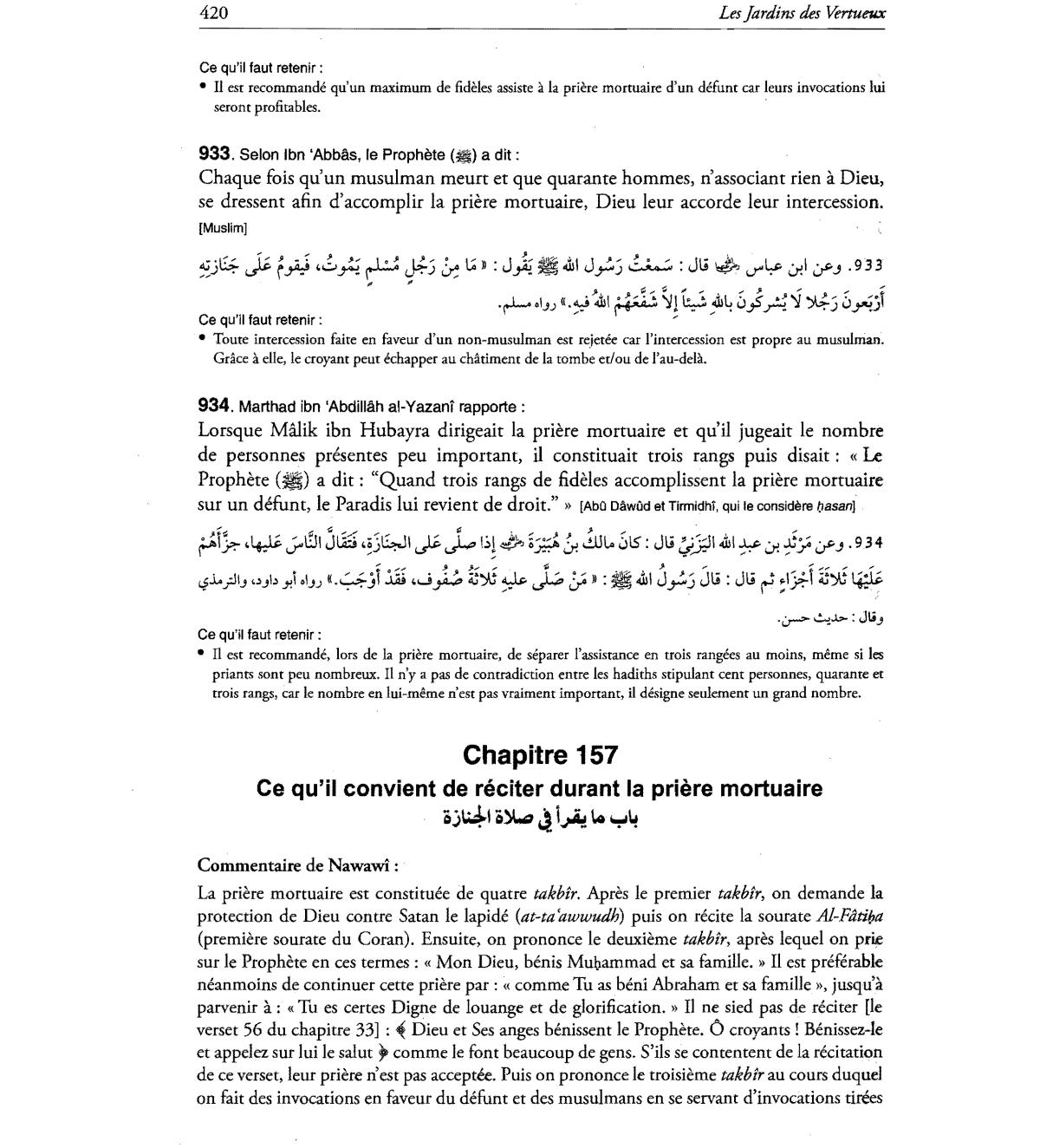 prianrs sont peu nombreux. II n'y a pas de contradiction entre les hadiths stipulant cent personnes, quarante
