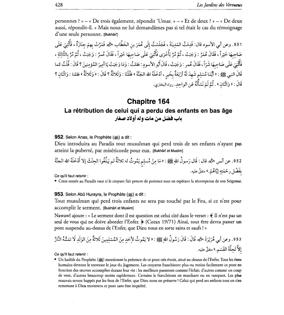 Tout musulman qui perd trois enfants ne sera pas touche par Ie Feu, si ce