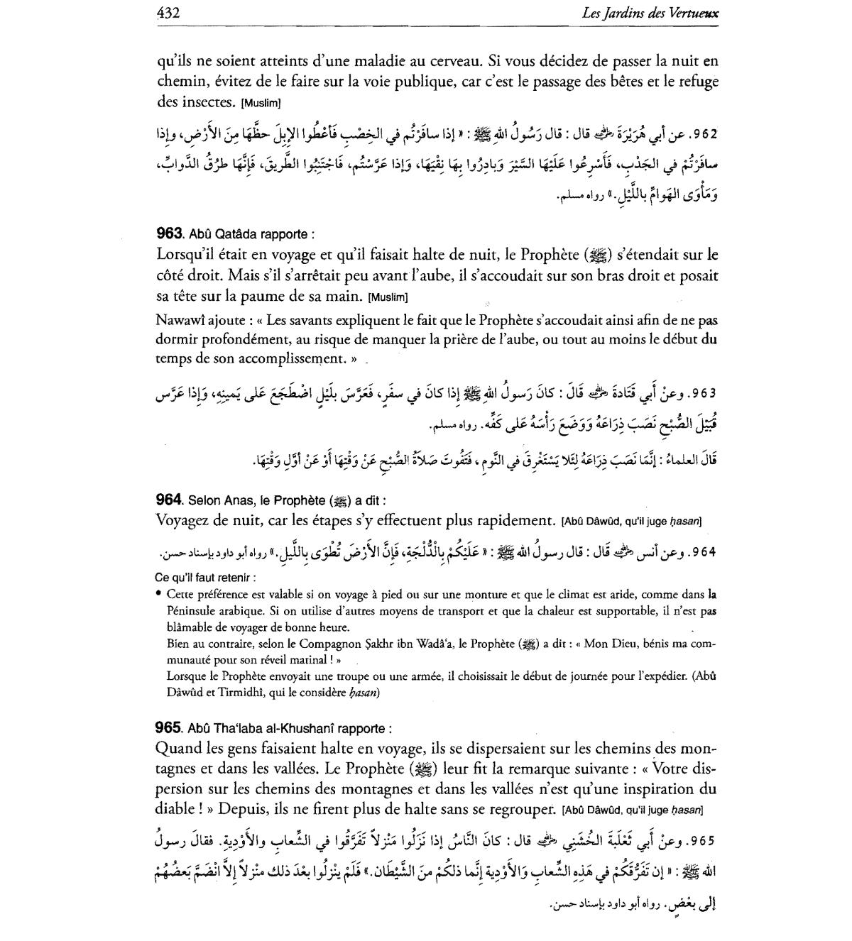 Lorsqu'il etait en voyage et qu'il faisait halte de nuit, Ie Prophere (.) s'etendait sur Ie