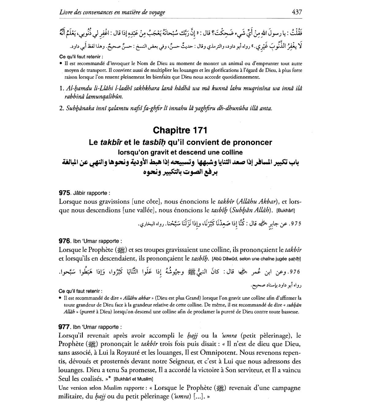 • II est recommande d'invoquer Ie Nom de Dieu au moment de monter un animal ou d'emprunter tout autte