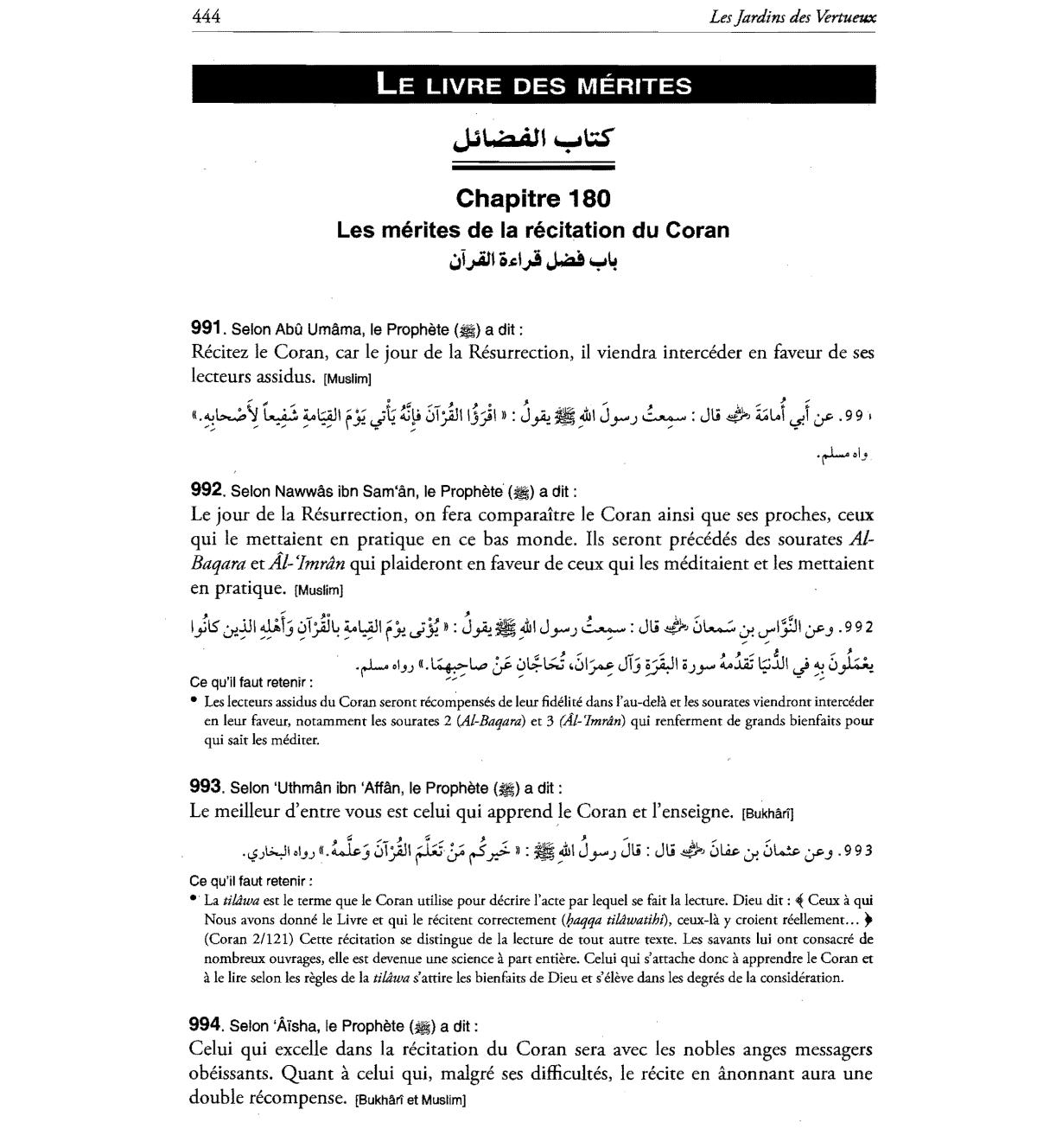 Le meilleur d'entre vous est celui qui apprend Ie Coran et