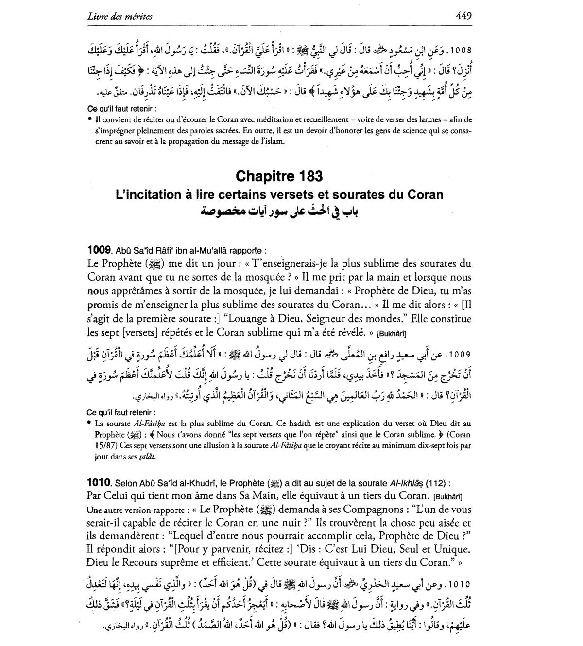 serait-il capable de reciter Ie Coran en une nuit ?" Ils trouverent Ia chose peu aisee et