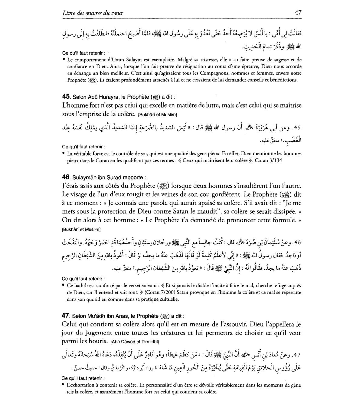 Ceux qui maitrisent leur colere". Coran