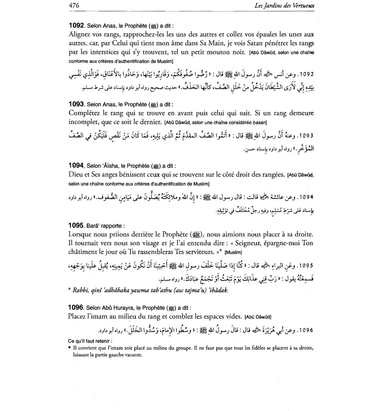 • II convient que !'imam soit place au milieu du groupe. Il ne faut pas que tous les fideles se placent
