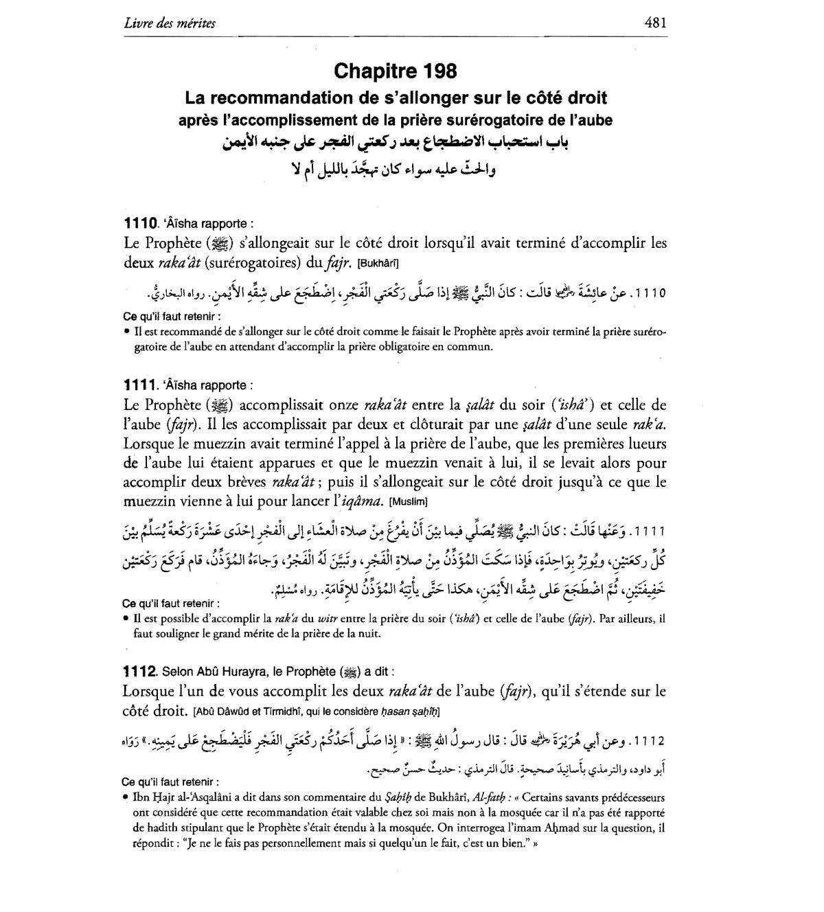 allonger sur Ie cote droit comme Ie faisait Ie Prophere apres avoir termine la priere surero