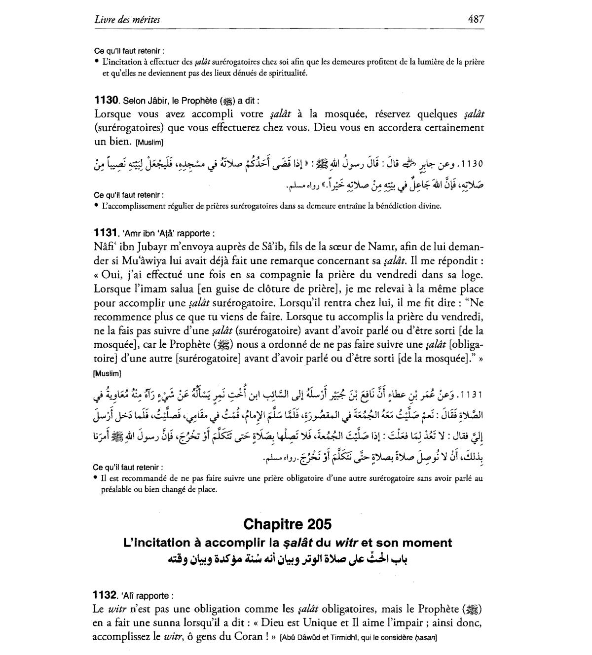• II est recommande de ne pas faire suivre une priere obligatoire d'une autre surerogatoire sans avoir parle au