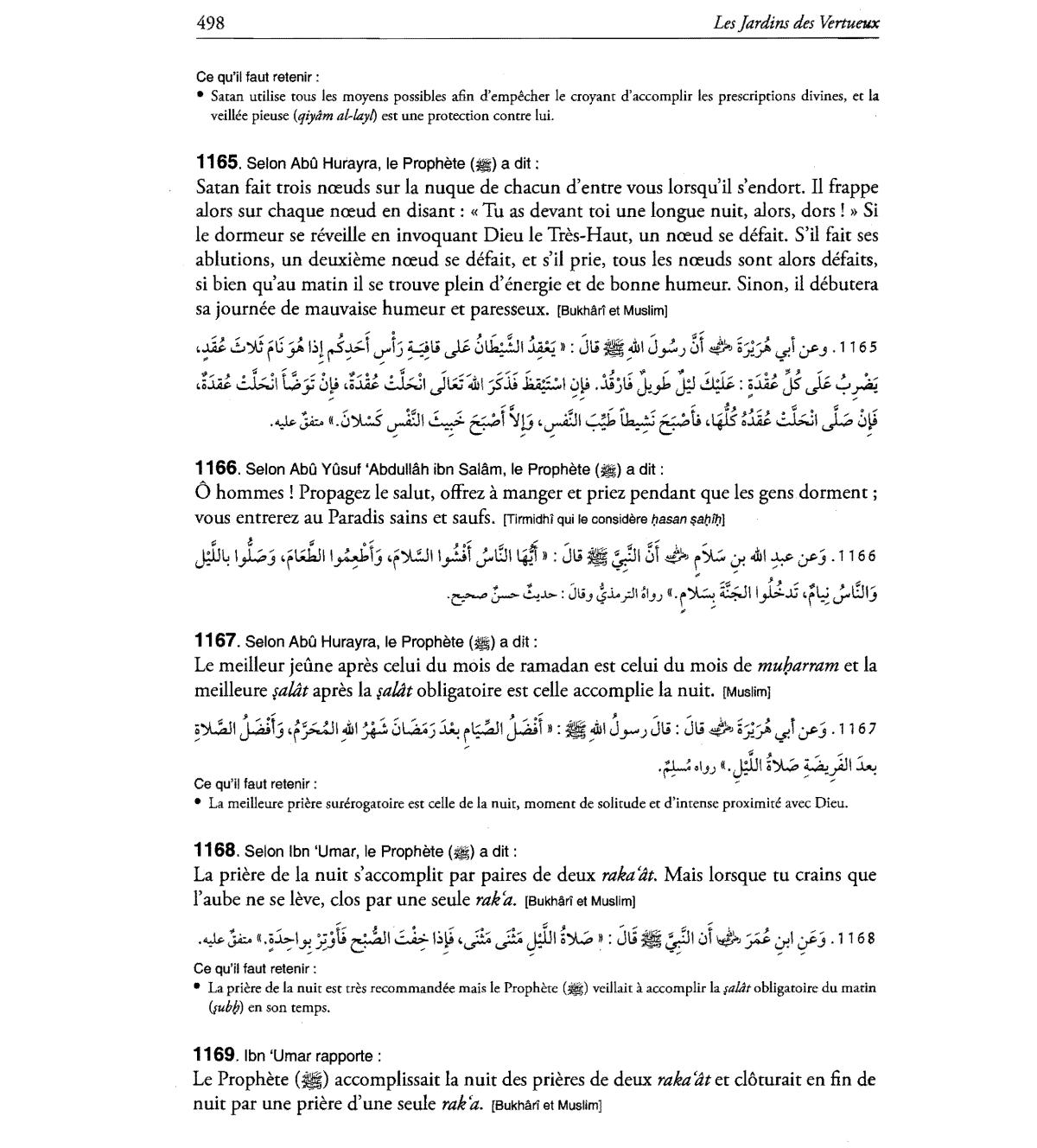 • La priere de la nuit est tres recommandee mais Ie Prophete
