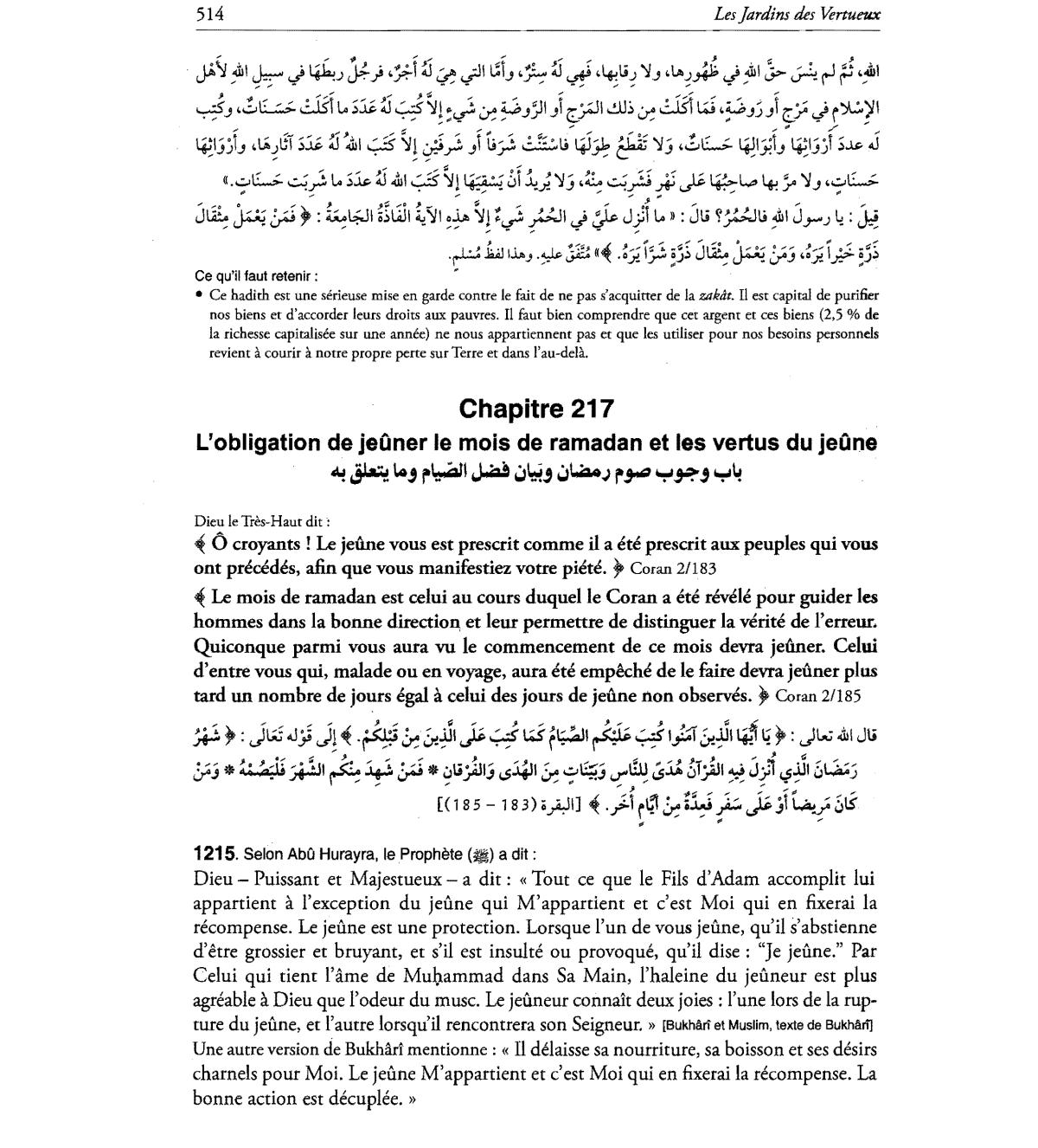 recompense. Le jeune est une protection. Lorsque l'un de vous jeune, qu'il s'abstienne