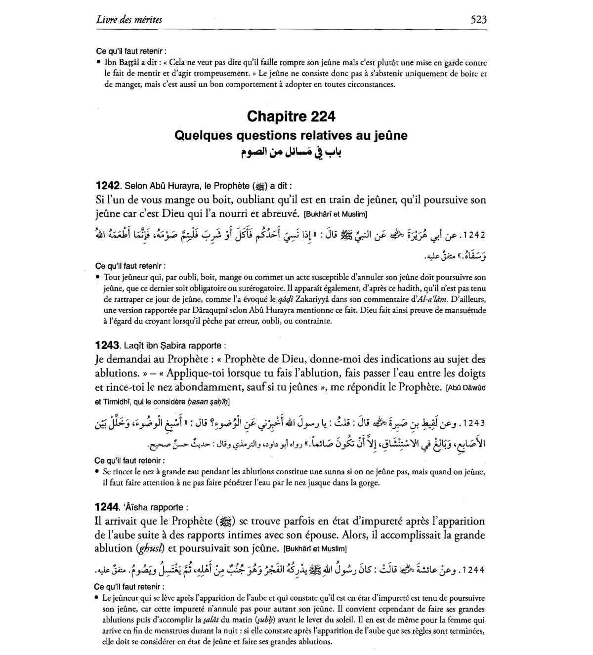 jeune, que ce dernier soit obligatoire ou surerogatoire. II apparait egalement, d'apres ce hadith, qu'it n'est pas tenu