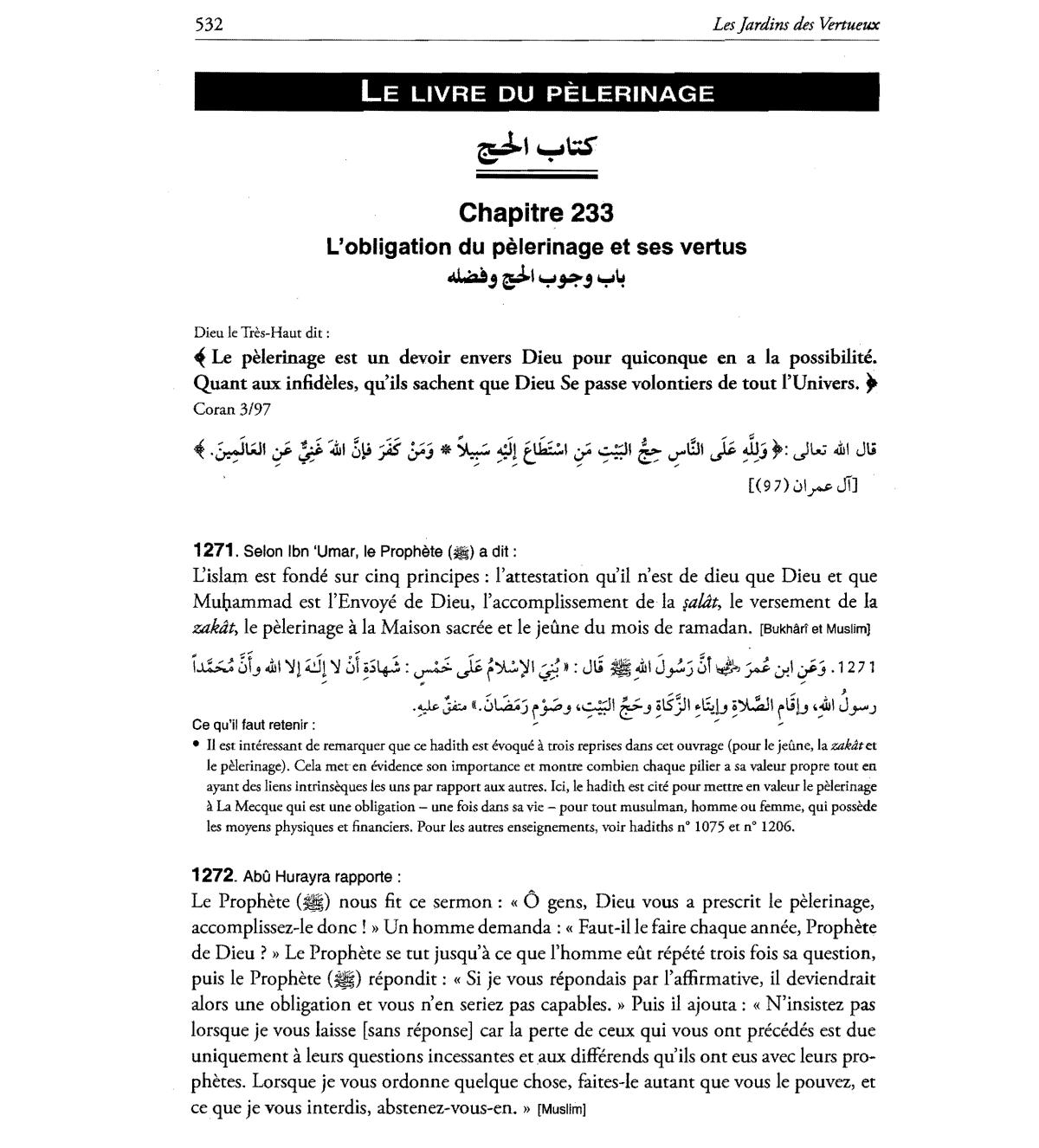ayant des liens intrinseques fes uns par rapport aux autres. lei, Ie hadith est cite pour metrre en valeur Ie pelerinage
