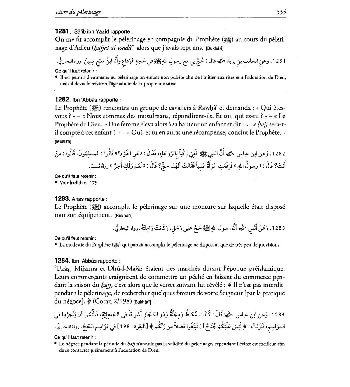 • Il est permis d'emmener au pelerinage un enfant non pubere afin de I'initier aux rites et