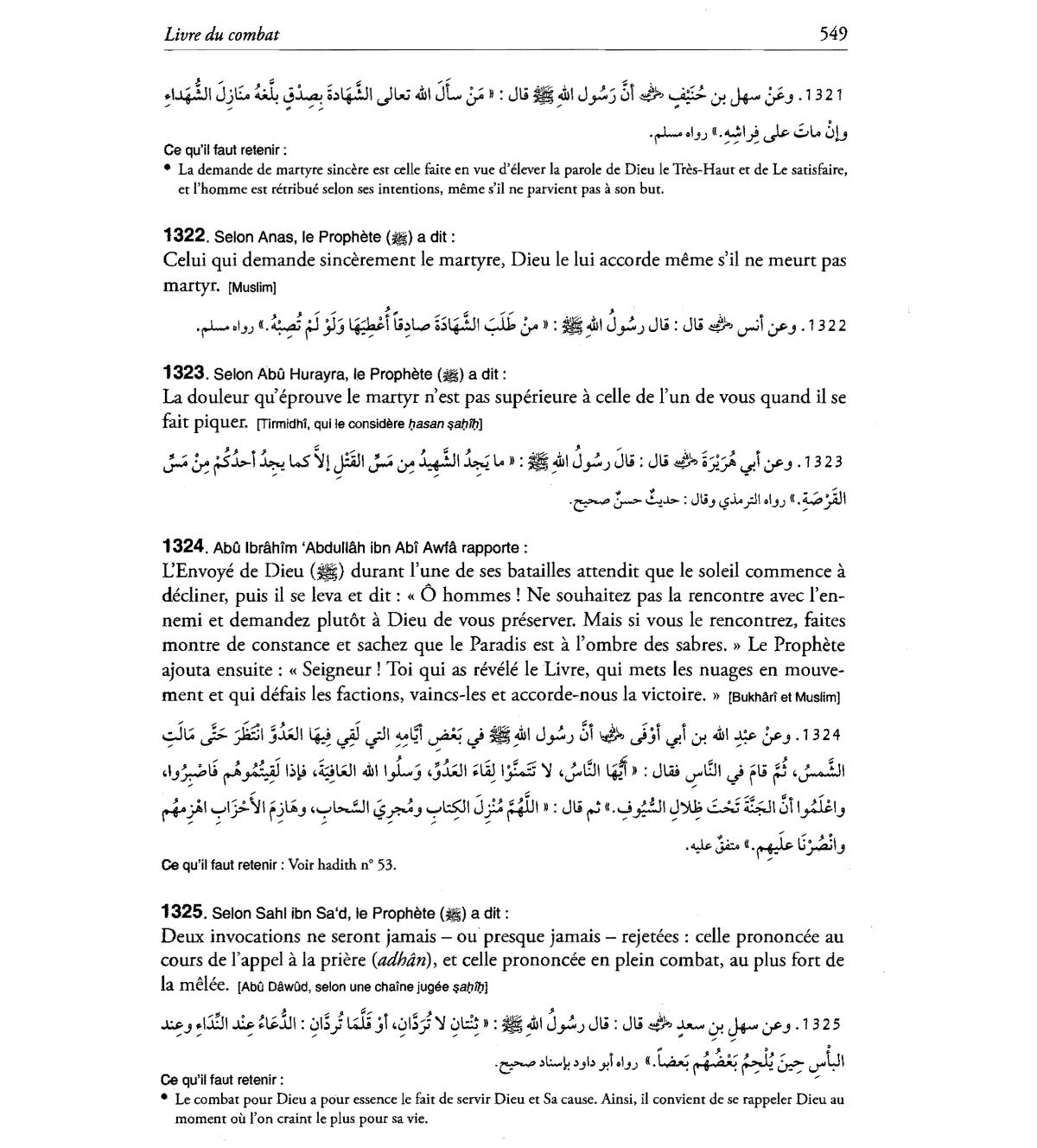 Celui qui demande sincerement Ie martyre, Dieu Ie lui accorde meme s'il ne meurt pas