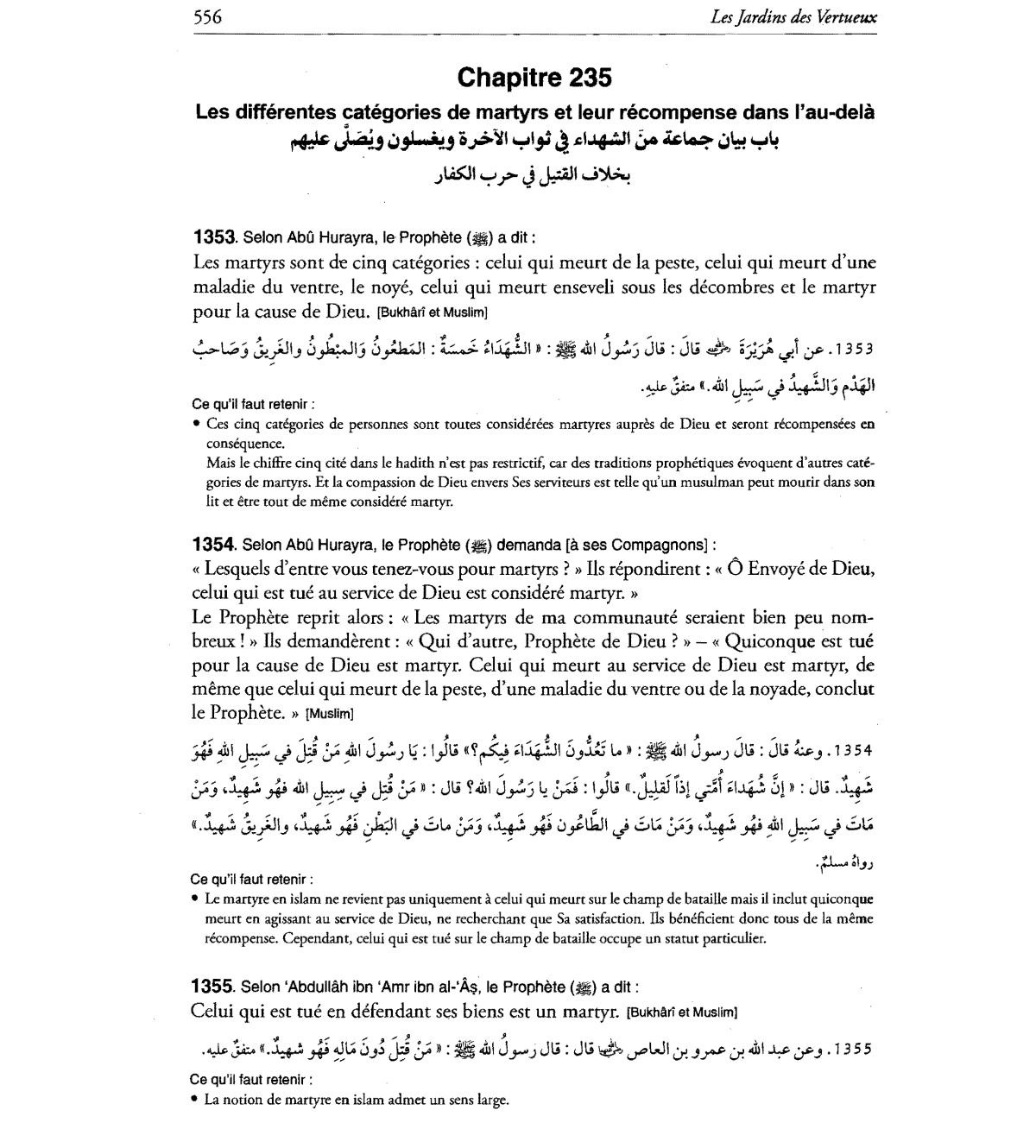 Les differentes categories de martyrs et leur recompense dans I'au-dela