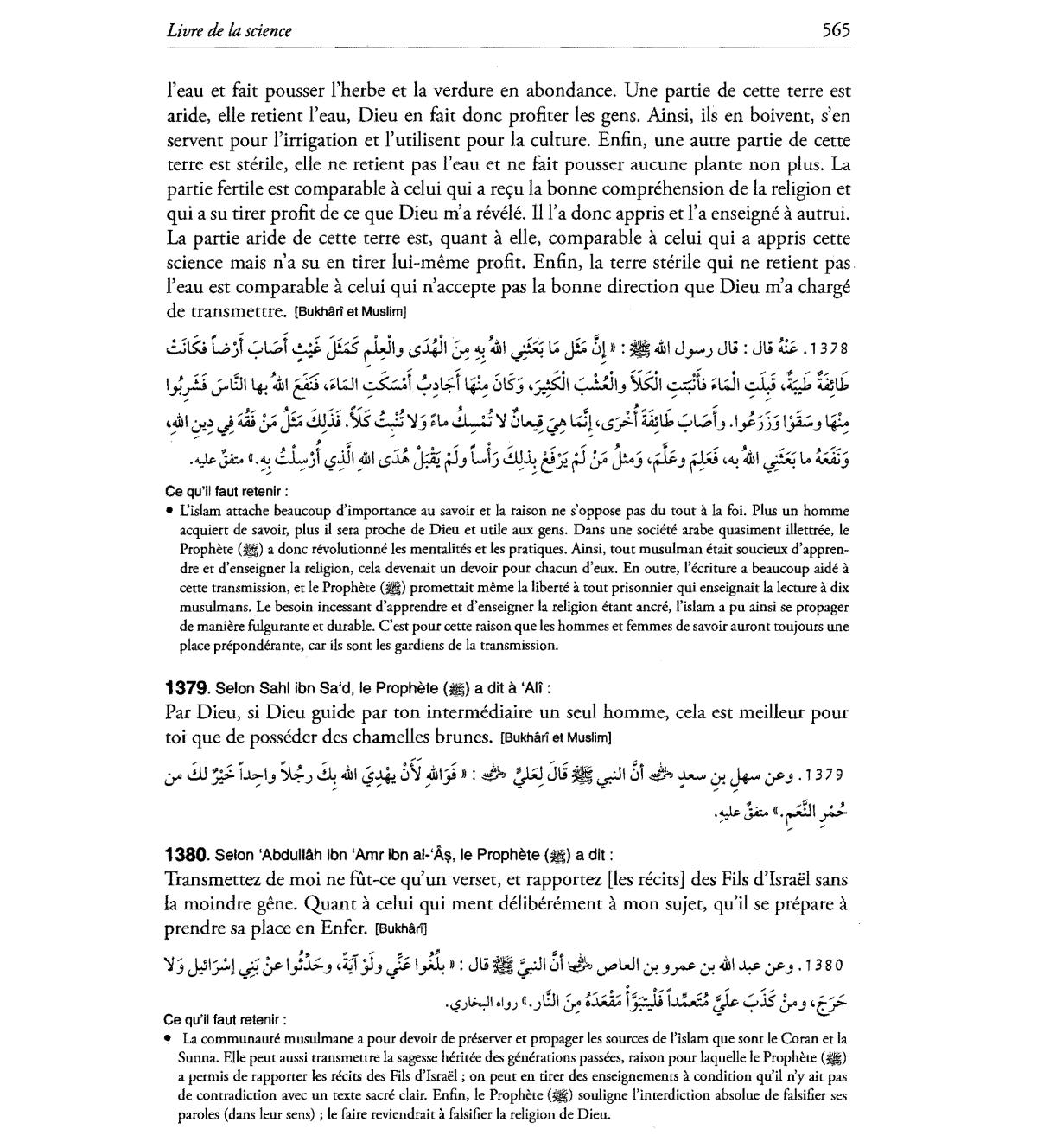 cette transmission, et Ie Prophete