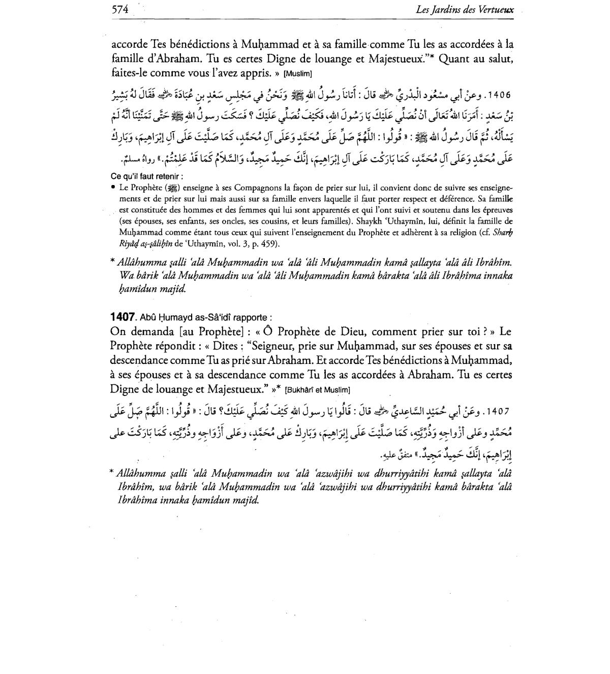 Dites : "Seigneur, prie sur Mu1;.ammad, sur ses epouses et sur sa