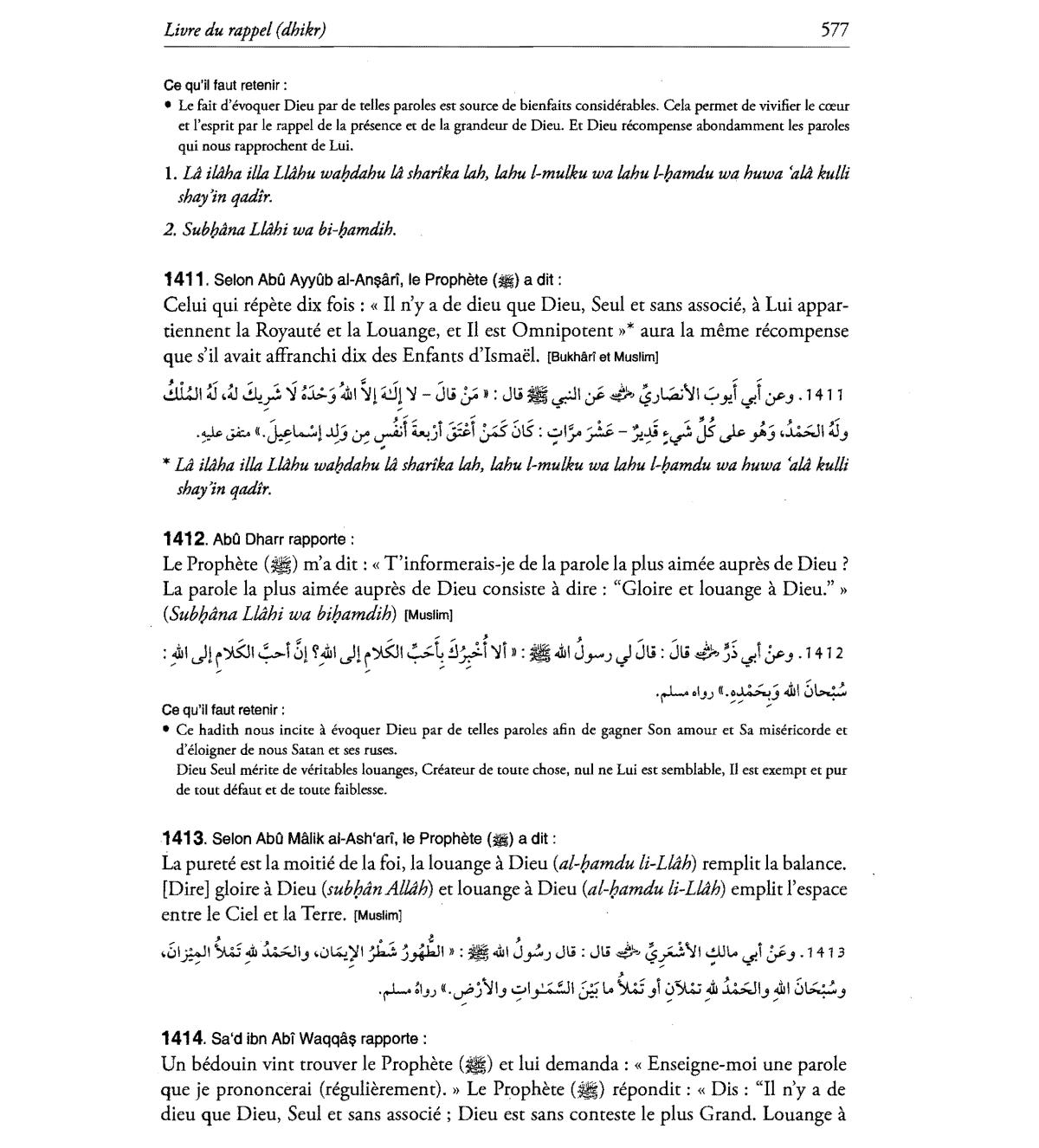 La parole la plus aimee aupres de Dieu consiste a dire: "Gloire et louange aDieu."