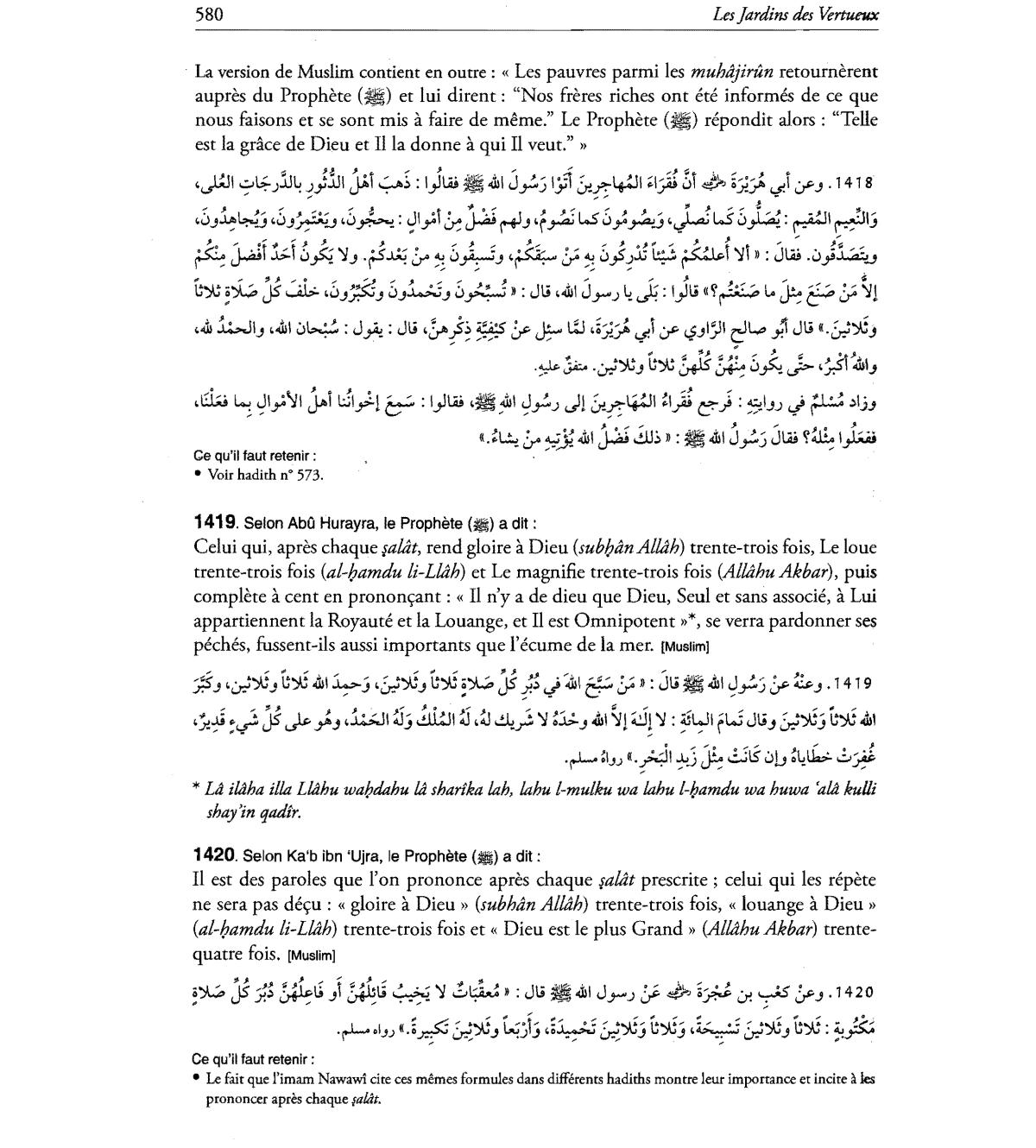 fait que l'imam Nawawi cite ces memes formules dans diiferents hadiths montre leur importance et incite 11