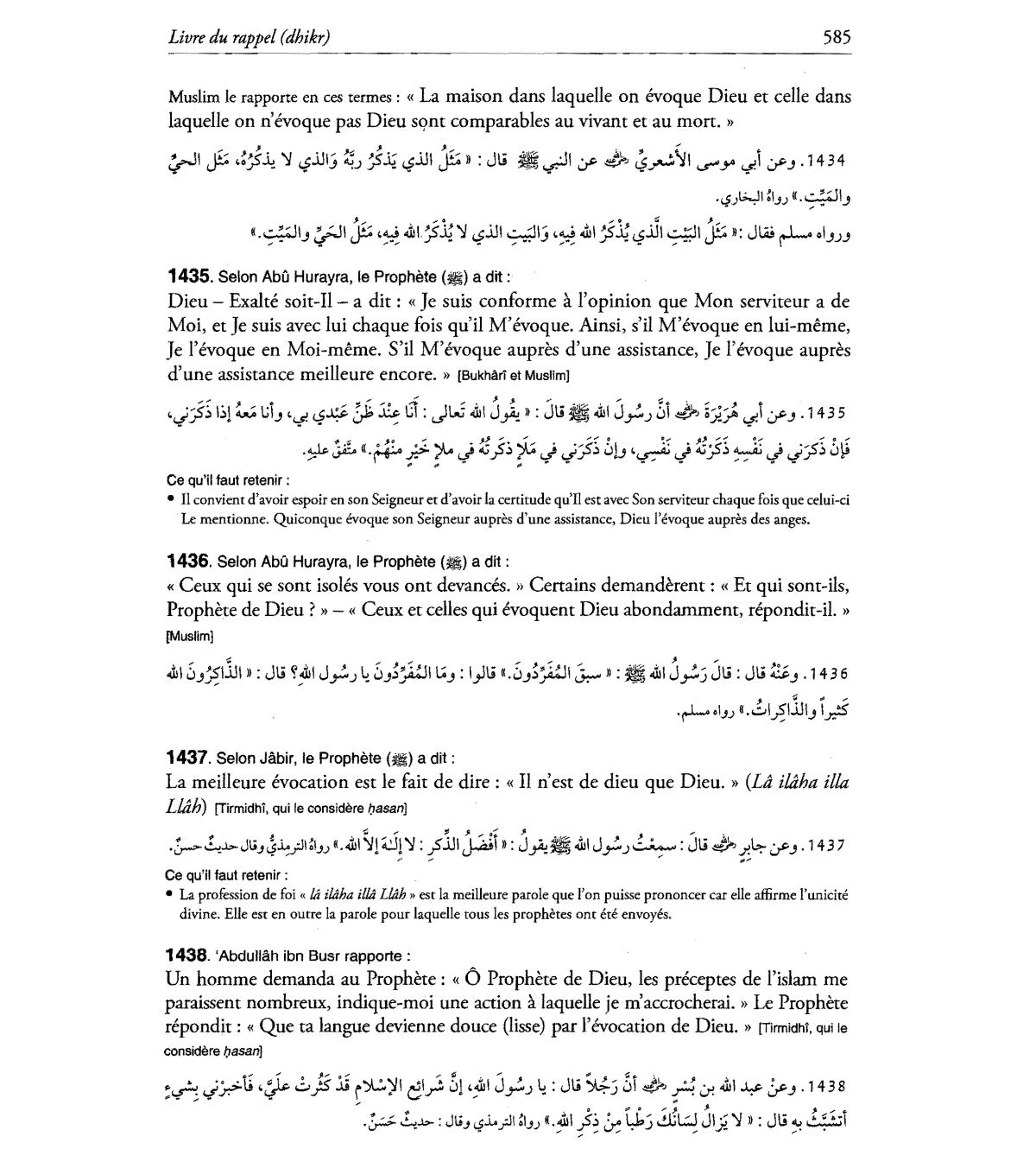 mentionne. Quiconque boque son Seigneur aupres d'une assistance, Dieu l'evoque aupres des anges.