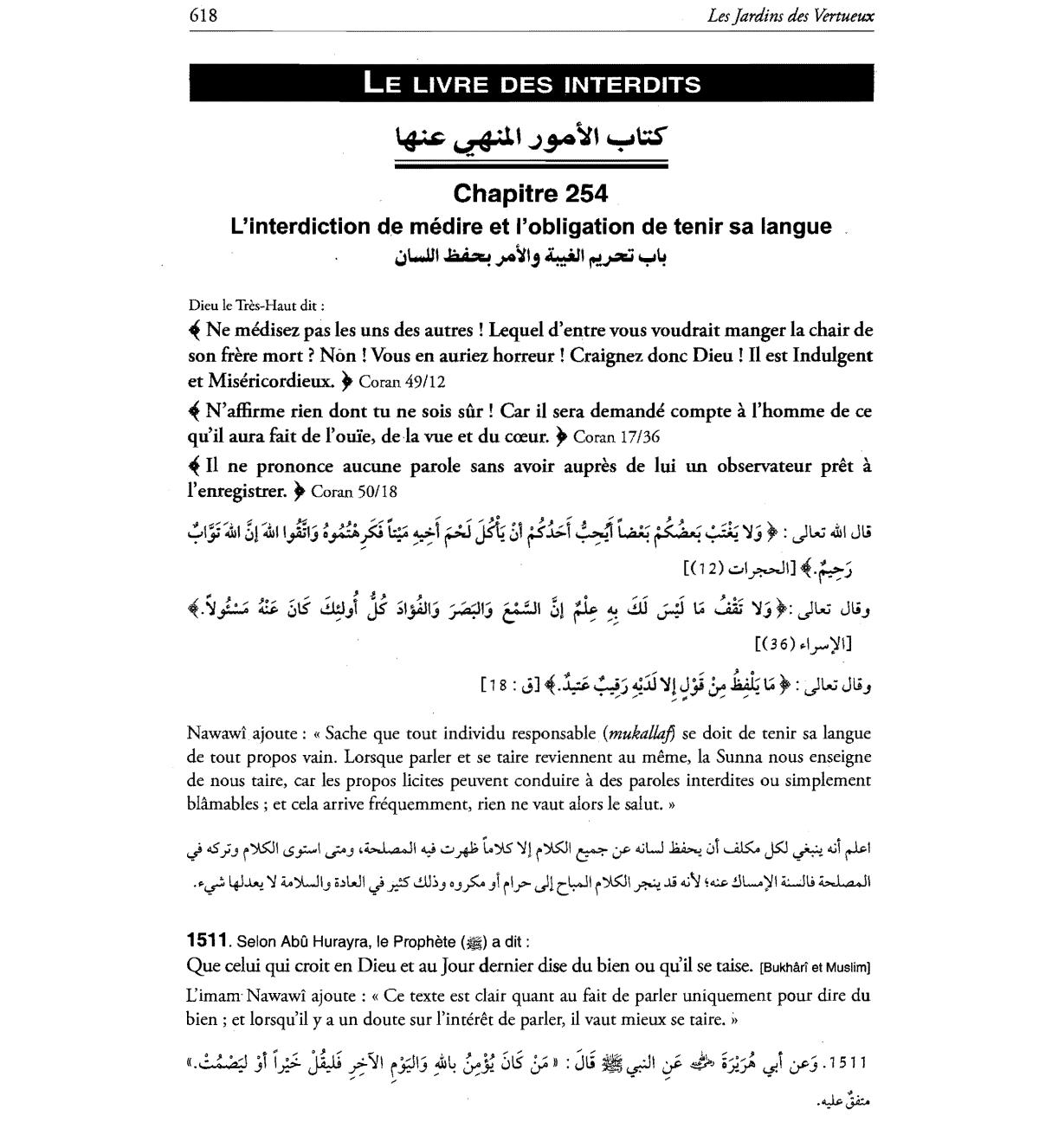 Que celui qui croit en Dieu et au Jour dernier ruse du bien ou quil se taise.