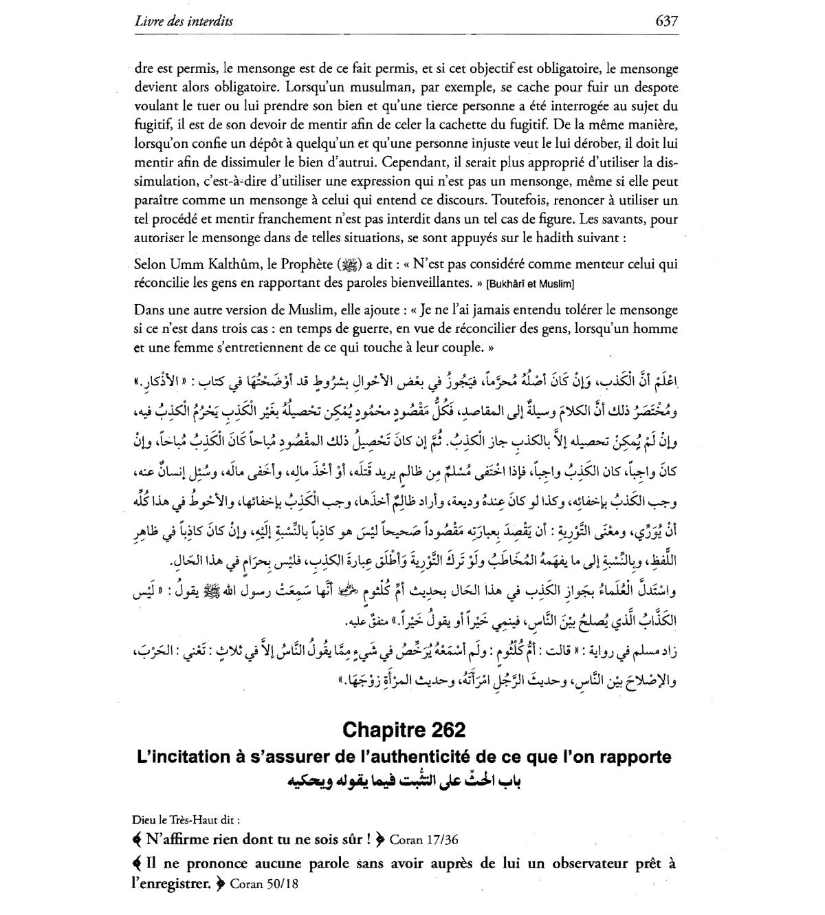 autoriser Ie mensonge dans de Telles situations, se sont appuyes sur Ie hadith suivant :