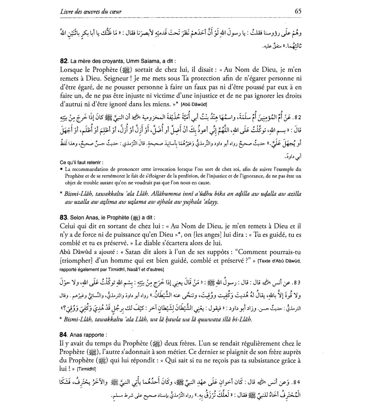 • La recommandation de prononcer cette invocation lorsque