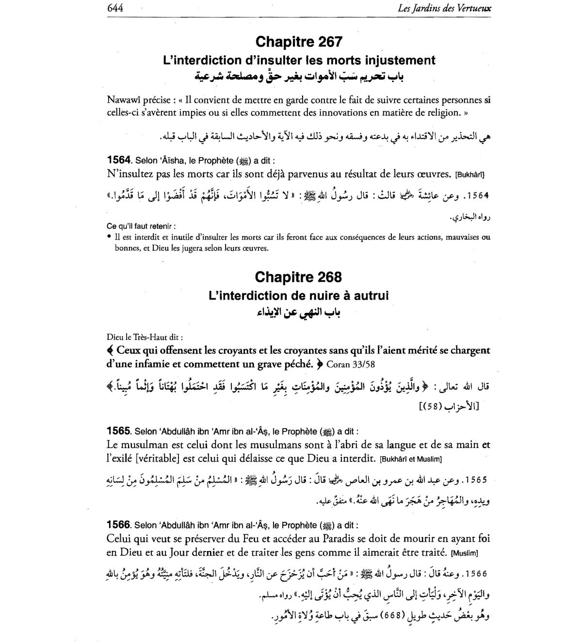 N'insultez pas les morts car Us sont deja parvenus au resultat de leurs ceuvres.