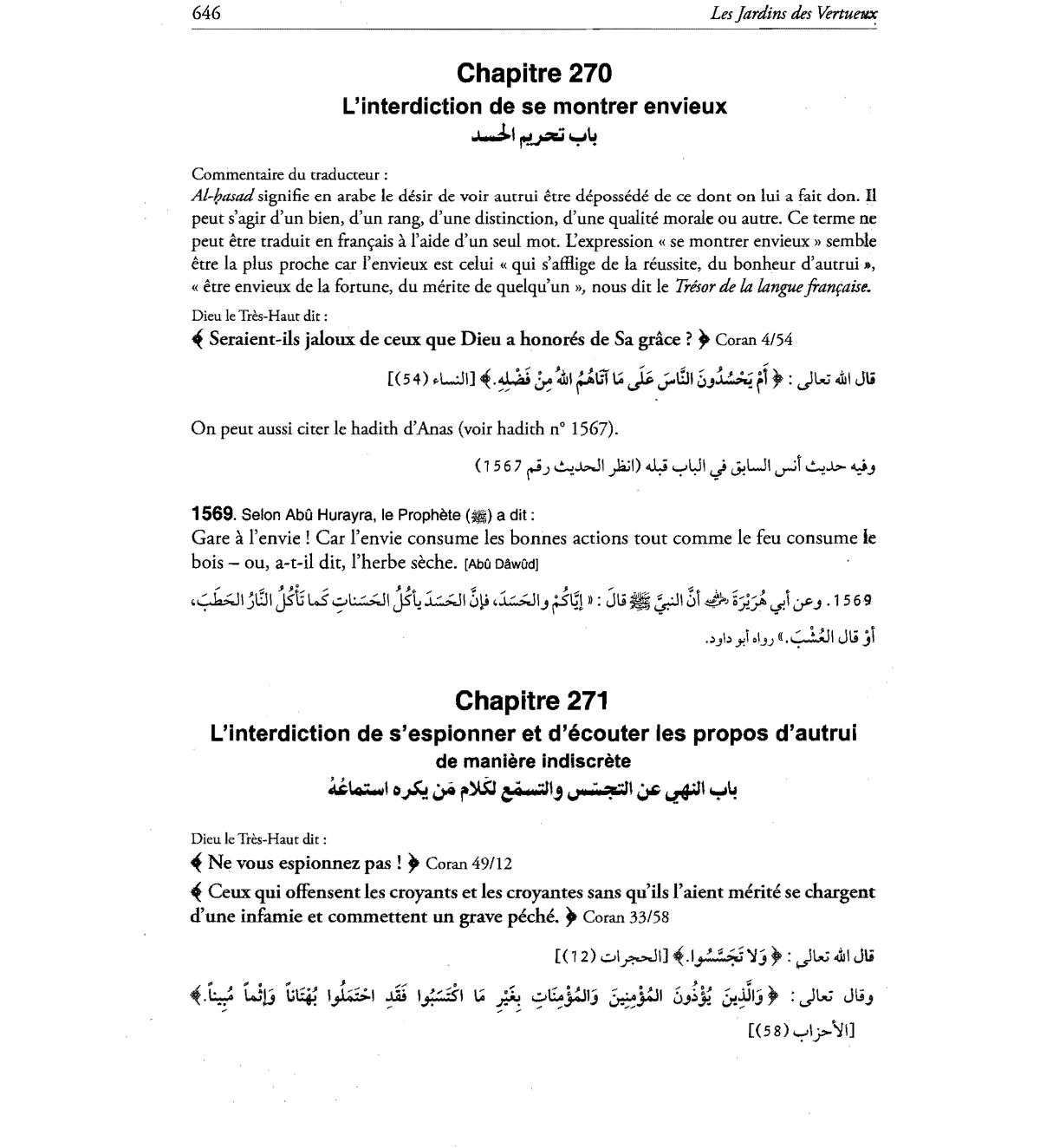 signifie en arabe Ie desir de voir autrui etre depossede de ce dont on lui a fait don. II