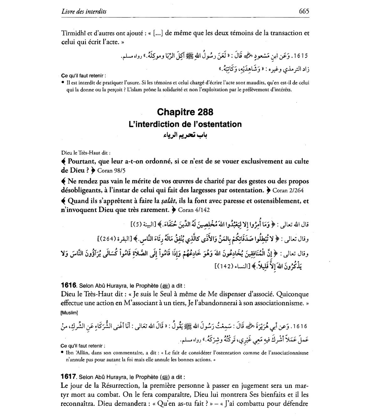 • Ibn 'AlJ.in, dans son commentaire, a dit : ({ Le fait de considerer l'ostentation comme de l'associationnisme