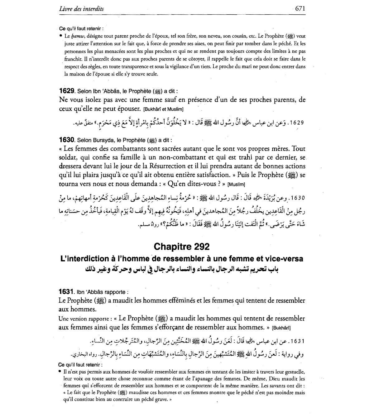 leur voix ou toute autre chose reconnue comme etant de l'apanage des femmes. De meme, Dieu maudit les