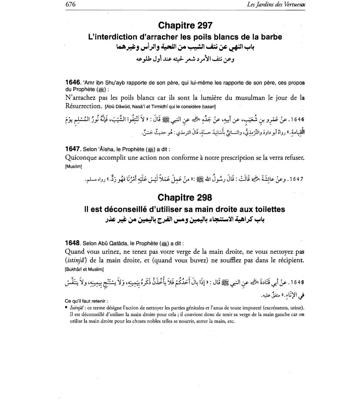 N'arrachez pas les poils blanes car ils sont la lumiere du musulman Ie jour de la