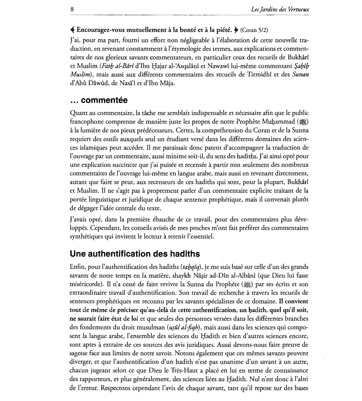 l'ouvrage par un commentaire, aussi minime soit-it, du sens des hadiths. J'ai ainsi opte pour