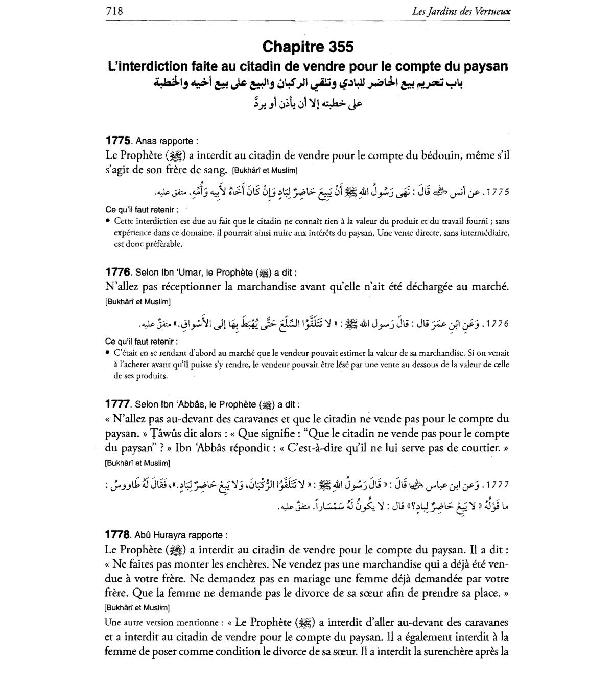 N'allez pas au-devant des caravanes et que Ie citadin ne vende pas pour Ie compte du