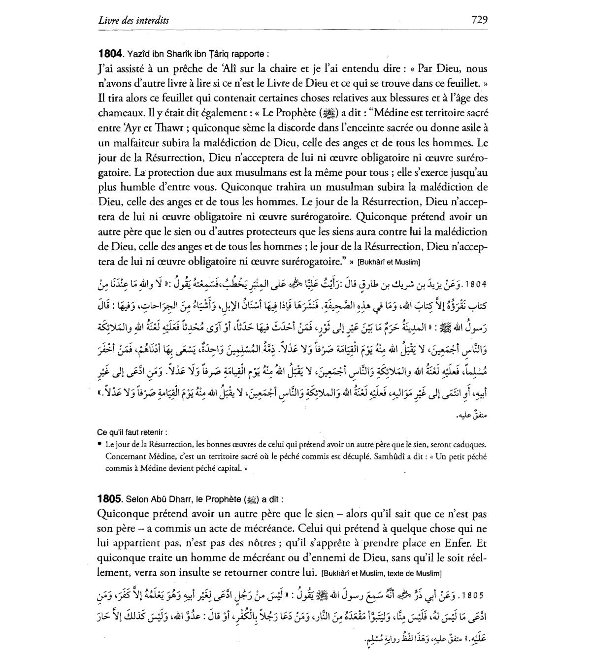 • Le jour de la Resurrection, Ies bonnes a:uvres de celui qui pretend avoir un autre pere que Ie sien, seront caduques.