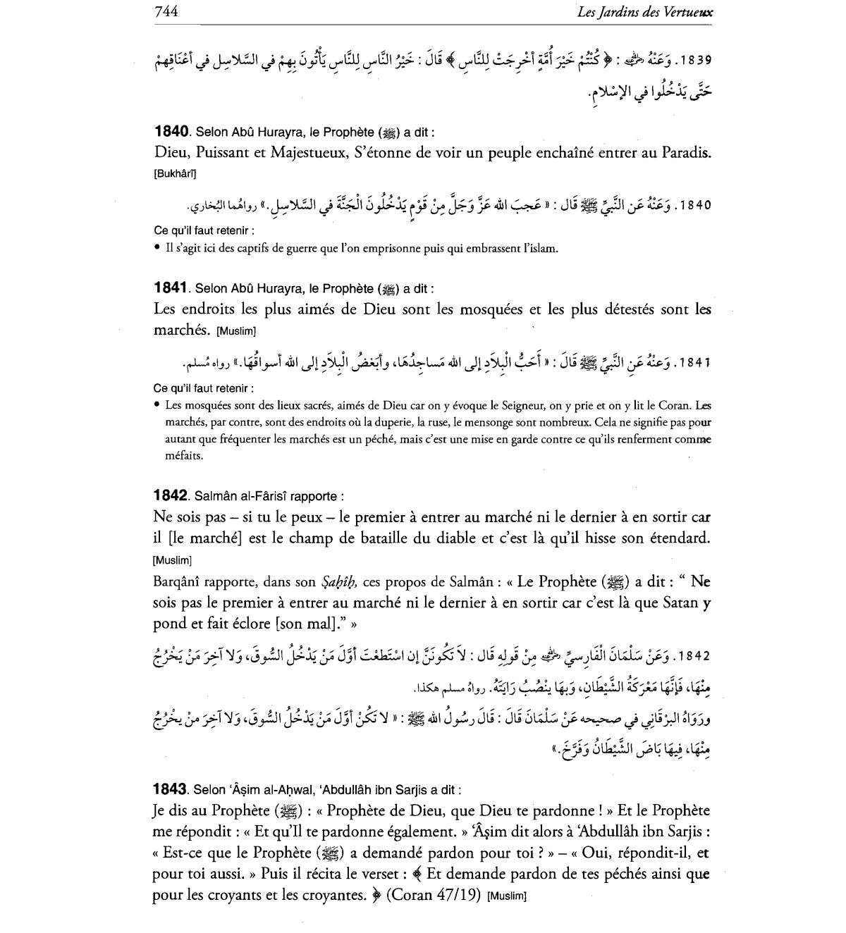 Les endroits les plus aimes de Dieu sont les mosquees et les plus detestes sont les