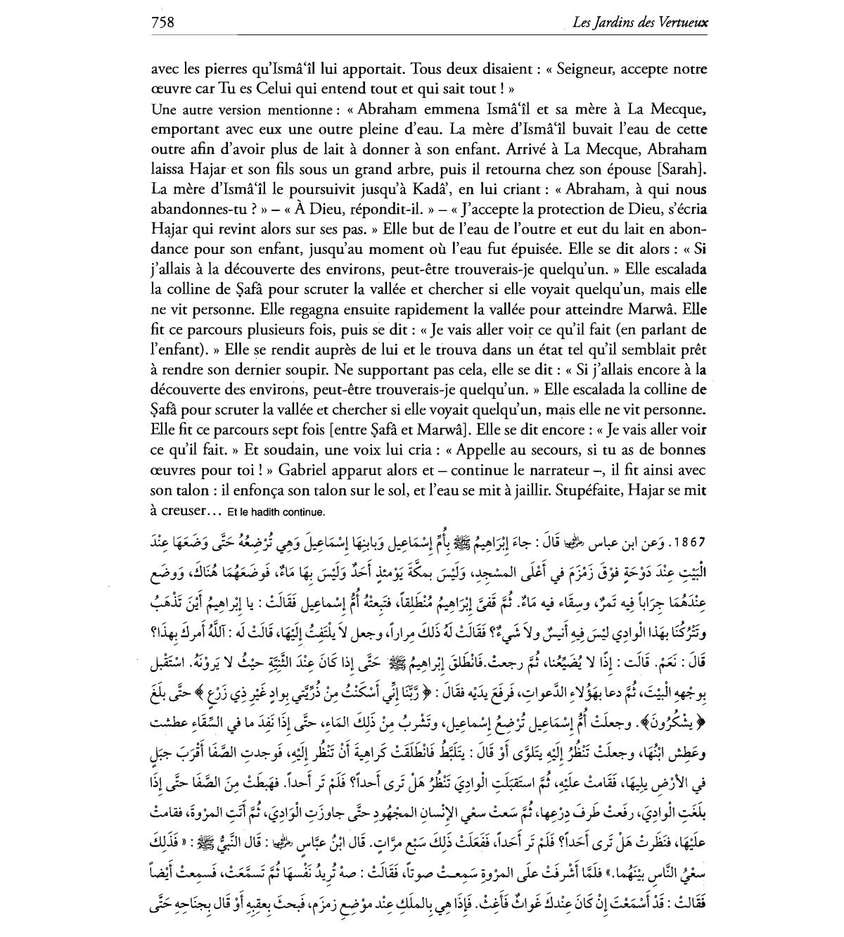 outre afin d' avoir plus de lait a donner a son enfant. Arrive a La Mecque, Abraham