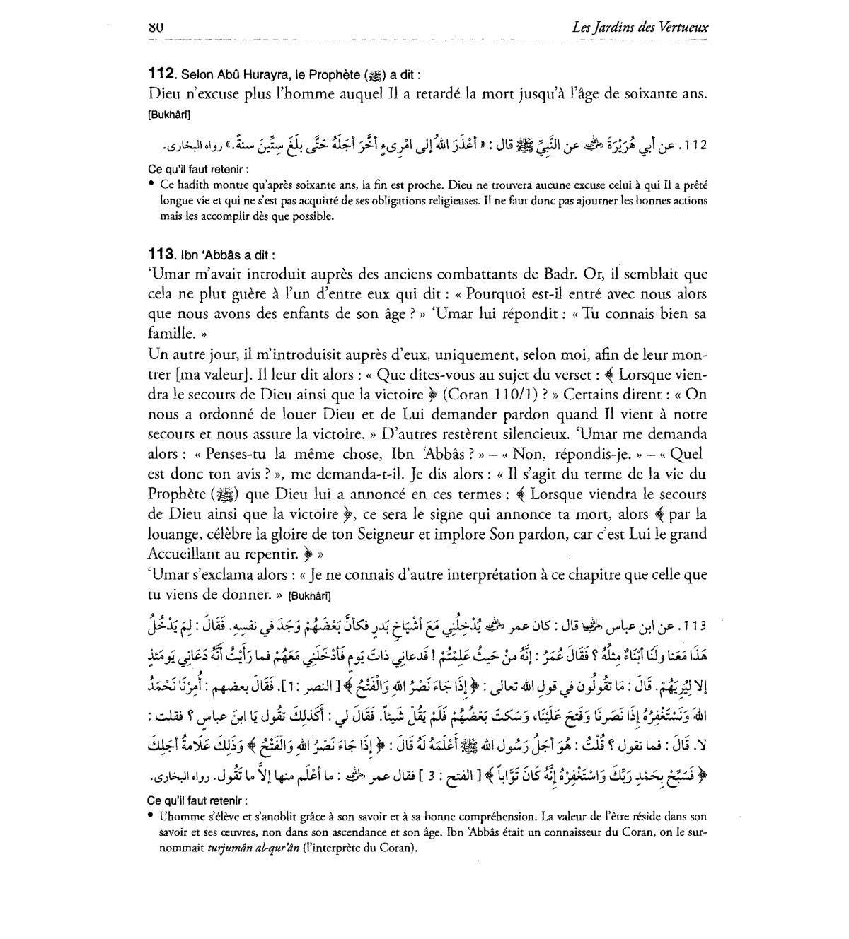 alors: «Penses-tu la meme chose, Ibn 'Abbas?» - {( Non, repondis-je.» -