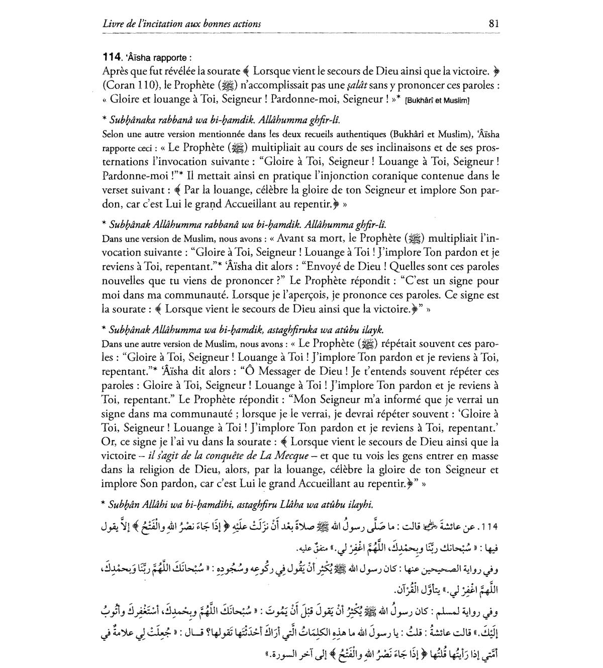 dans la religion de Dieu, alors, par la louange, celebre la gloire de ton Seigneur et