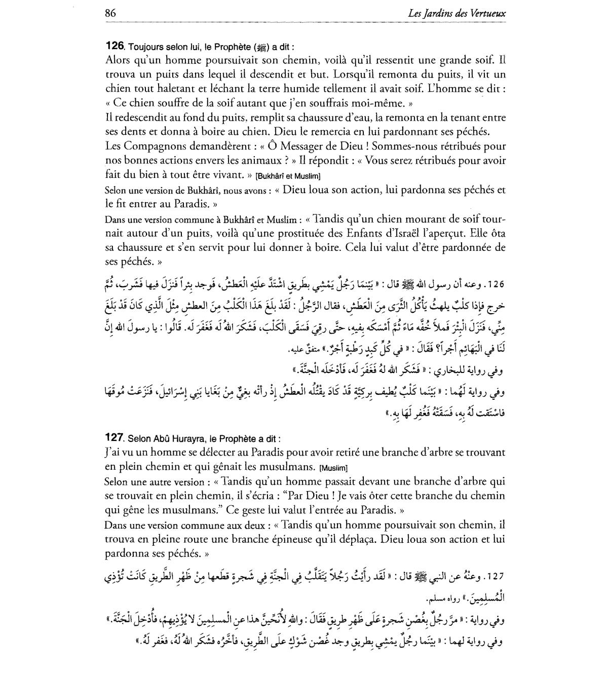 trouva en pleine route une branche epineuse qu'il depla<;:a. Dieu loua son action et lui