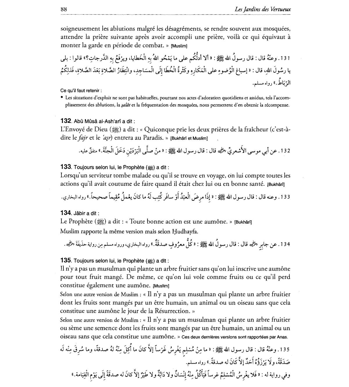 soigneusement les ablutions malgre les desagrements, se rendre souvent aux mosquees,