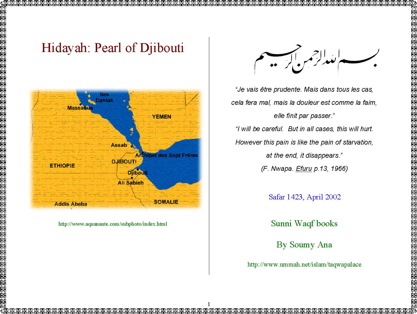 O strange is life! I dreamt of my friend the Djiboutian so often, hoping that one day I would gather the courage to talk to her and just utter a few words she would understand: “Peace be upon you, my sister. I love you for the sake of Allah and I dream of your friendship.” But everyday for two years we met in the archive room among the books of the library and we remained for each other a cover of a book that we both dreamt to open. How life can be simple and sometimes so complicated! Maybe there is a time for each moment in life because this moment we met was one of the best times in my life. It was also a time of discoveries, of unexpected discoveries. How many times did I dream of the day we would talk? And I dreamt of Djibouti and of the stream of water touching its borders as I dreamt of a lost acquaintance. How would have I known? I had never dreamt of what I would discover after flopping a few pages of her life! What terrible