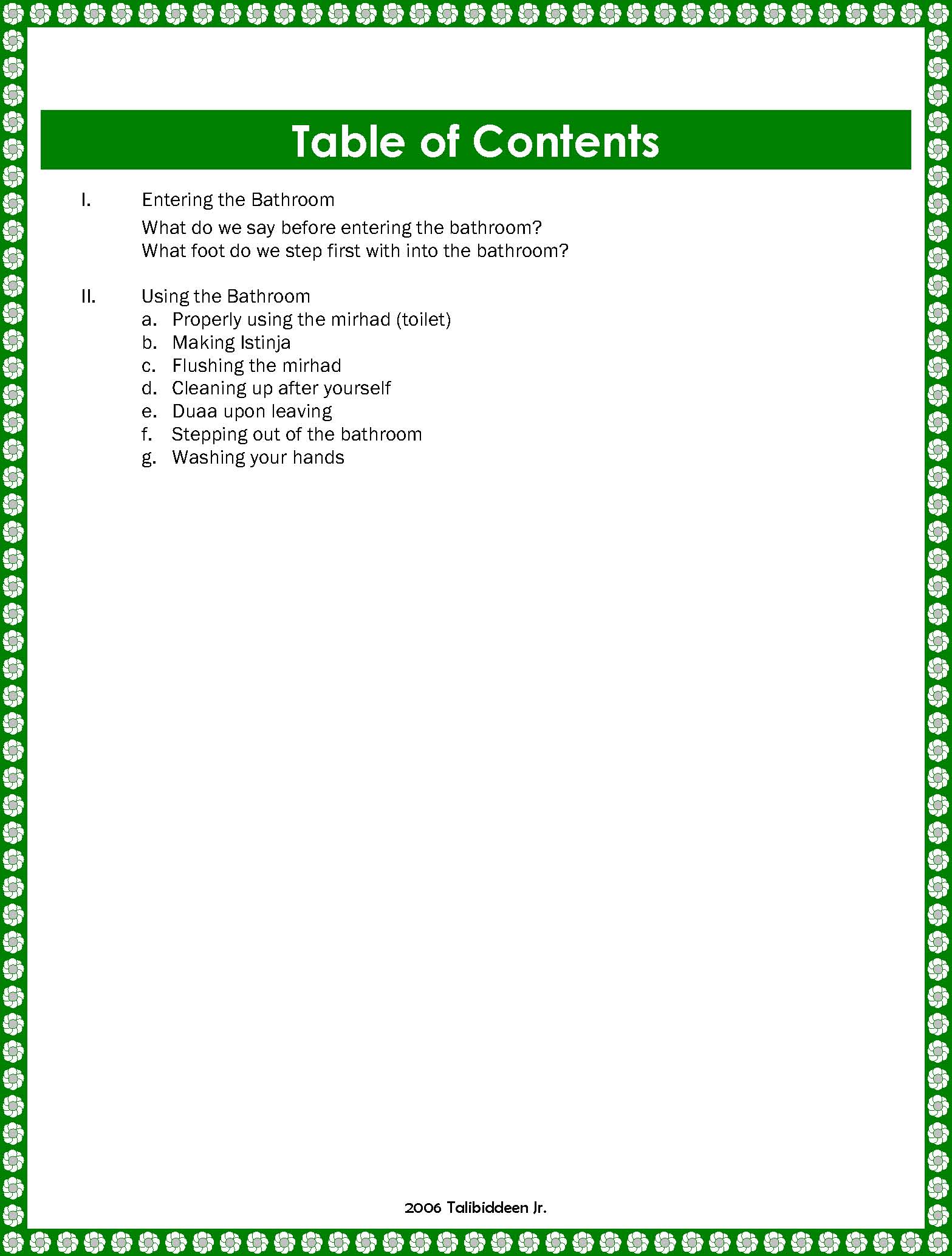 I. Entering the Bathroom What do we say before entering the bathroom?